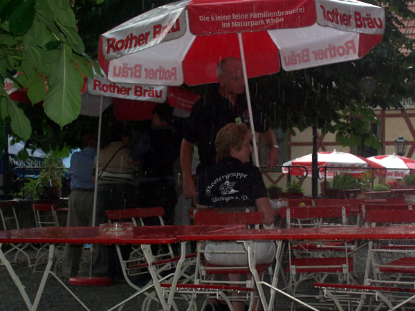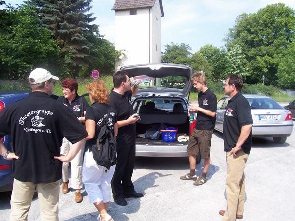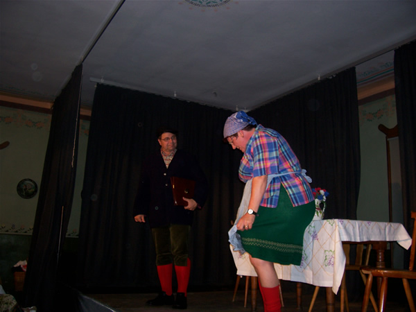 Die Akteure aus Uettingen waren: Frank Endres als der Bauer, Wolfram Geiger als der Geometer, Doris Seufert als Magd und Daniel Martin als Knecht. Gespielt haben alle vier sehr überzeugend. Besonders hervorzuheben ist aber die Leistung von Debutant Daniel, der auf der Bühne stand, als hätte er sein Leben lang nichts anderes gemacht. Dickes, fettes Kompliment.