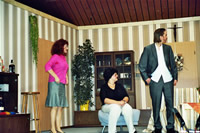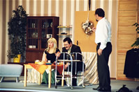 Werner Frisius (Ralf Endres) und seine Frau Lisa (Denise Hellmann als blonde? Versuchung), ein befreundetes Ehepaar, springen als Diener und Hausmädchen ein. Freund Jörg (Daniel Martin sehr überzeugend als Debütant - herzlichen Glückwunsch!!!) soll den Chauffeur spielen.