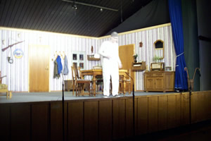 Plötzlich ziehen schwarze Wolken über dem Hof auf.
